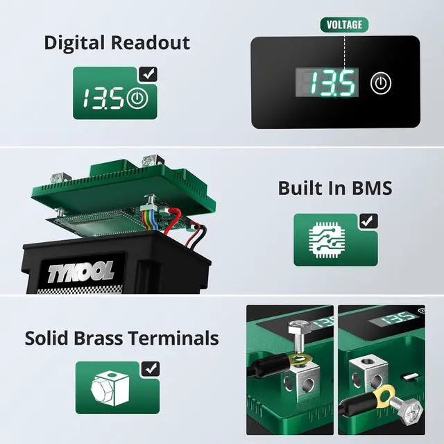 SMART BMS & DIGITAL READOUT: Integrated Battery Management System with built-in Digital Readout LCD for real-time voltage monitoring. Ensures balance while protecting against over-charge and discharge.