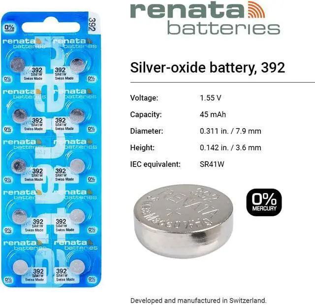 392 SR41W | Nominal Voltage - 1.55V | Nominal Capacity - 45 mAh