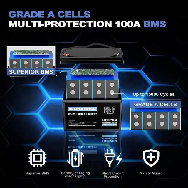 Intelligent All-in-One Protection SystemThe integrated 100A Battery Management System (BMS) provides comprehensive protection against overcharge, over-discharge, short circuit, overload, and overheating. It ensures safe, stable, and worry-free operation in all your applications.