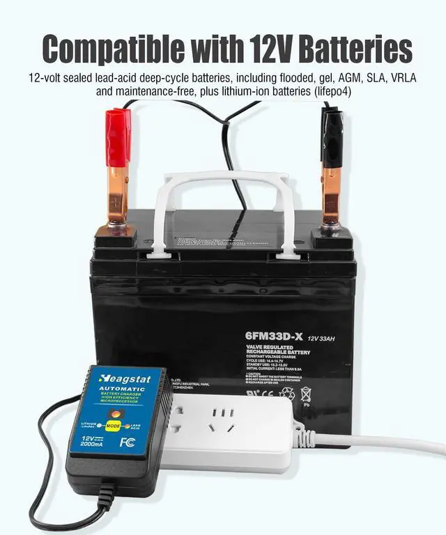 Compatible with 12V Lithium (LiFePO4) and Sealed Lead Aacid Battery ( including flooded, GEL, AGM, VRLA, Deep-cycle and maintenance-free batteries ).