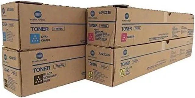 • Genuine OEM Konica Minolta TN619 Complete Toner Cartridge Set 78K pages Yeild For Use In Konica Minolta AccurioPress C2060 Konica Minolta AccurioPress C2070 Konica Minolta AccurioPress C2070P Konica Minolta AccurioPress C3070 Konica Minolta AccurioPress C3080 Konica Minolta AccurioPress C3080P Konica Minolta AccurioPress C4070 Konica Minolta AccurioPress C4080 Konica Minolta Bizhub Press C1060 Konica Minolta Bizhub Press C1070 Konica Minolta Bizhub Press C1070P Manufacturer Part #: A3VX130, TN619K, TN-619K, A3VX430, TN619C, TN-619C, A3VX330, TN619M, TN-619M, A3VX230, TN619Y, TN-619Y