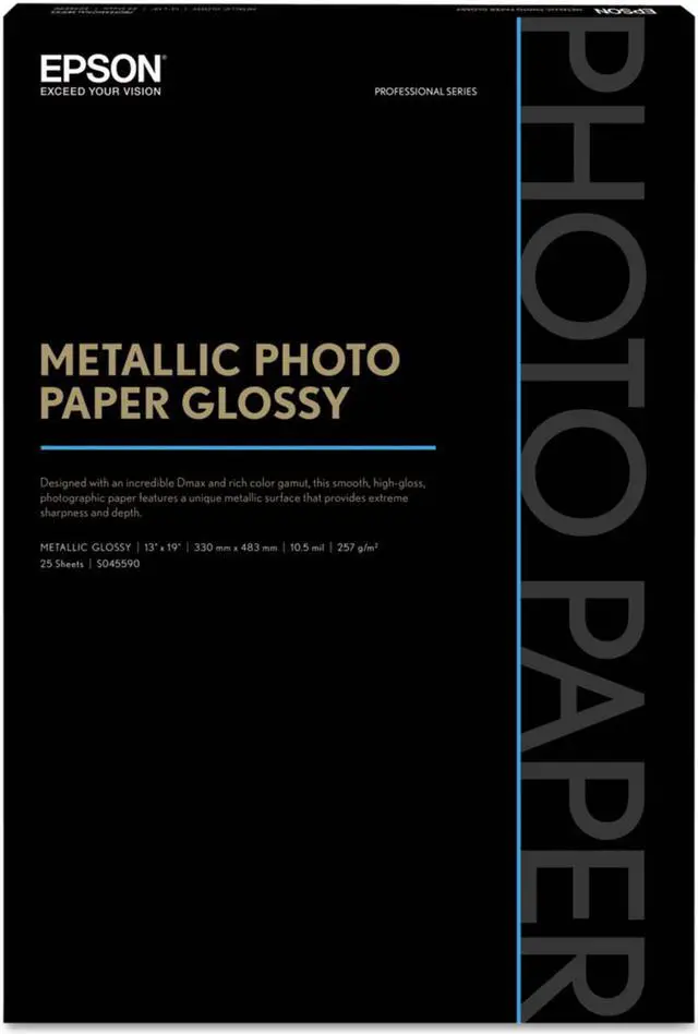 Designed with an incredible Dmax and rich color gamut, this smooth, high-gloss, photographic paper features a unique metallic surface that provides extreme sharpness and depth. Sheet/Roll Size: 13 x 19; Paper/Media Thickness (mil): 5.5 mil; Paper/Media Color(s): White; Color Family: White.