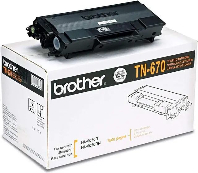 Yields 7,500 pages at 5 percent coverage.Product informationTechnical DetailsManufacturerBROTHERBrandBrotherItem Weight2.9 poundsProduct Dimensions14.6 x 7.4 x 8.4 inchesItem model numberTN670Is Discontinued By ManufacturerNoColorBlackMaterial TypePlasticNumber of Items1SizenullManufacturer Part NumberTN670Additional InformationASINB000117DG2Customer Reviews4.5 out of 5 stars16 ratings4.5 out of 5 starsBest Sellers Rank#107,031 in Office Products (See Top 100 in Office Products)#1,841 in Printer Toner CartridgesDate First AvailableJanuary 19, 2006FeedbackWould you like to tell us about a lower price? VideosPage 1 of 1Start OverPage 1 of 1Previous pageVideos for this product 1:34Click to play videoBrother Genuine Video Brother International CorporationVideos for this product 0:56Click to play videoBrother Tn670 Toner - Retail Packaging.Brother TN670Toner–Empaquetado al por menor Merchant VideoVideos for related products 3:49Click to play videoCHEAP TONER FOR HP PRINTER | UniWork Toner for HP LaserJet P1606 Dad ReviewsVideos for related products 4:43Click to play videoBEST Desk or Small Office Printer - HP LaserJet 404n SteveDOESVideos for related products 0:30Click to play videoCompatible Toner Cartridge for Brother TN660 E-Z inkVideos for related products 1:14Click to play videoGREENSKY Compatible CF258X Toner Cartridges Guideline GREENSKYVideos for related products 0:56Click to play videoRT Toner Cartridge 226a Print ExpertVideos for related products 0:28Click to play videoHow to replace chip Hp toner cartridges DIGITONERVideos for related products 1:06Click to play videoRETCH Compatible Toner Cartridges Print ExpertVideos for related products 0:44Click to play videoHow to install 414A/414X compatible toner Toner H PartyNext pageUpload your video Customer Review