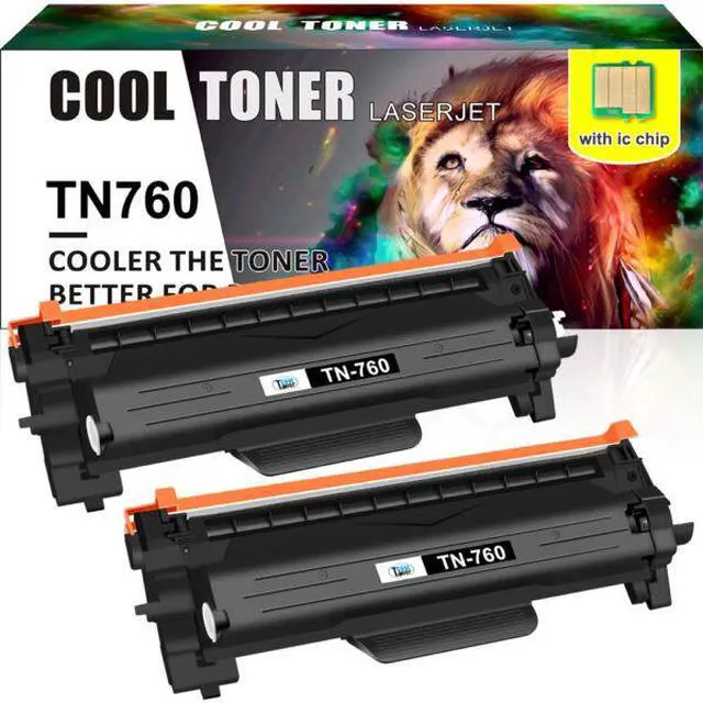 2PK Toner TN760 With Chip Compatible With Brother MFC-L2710DW L2717DW