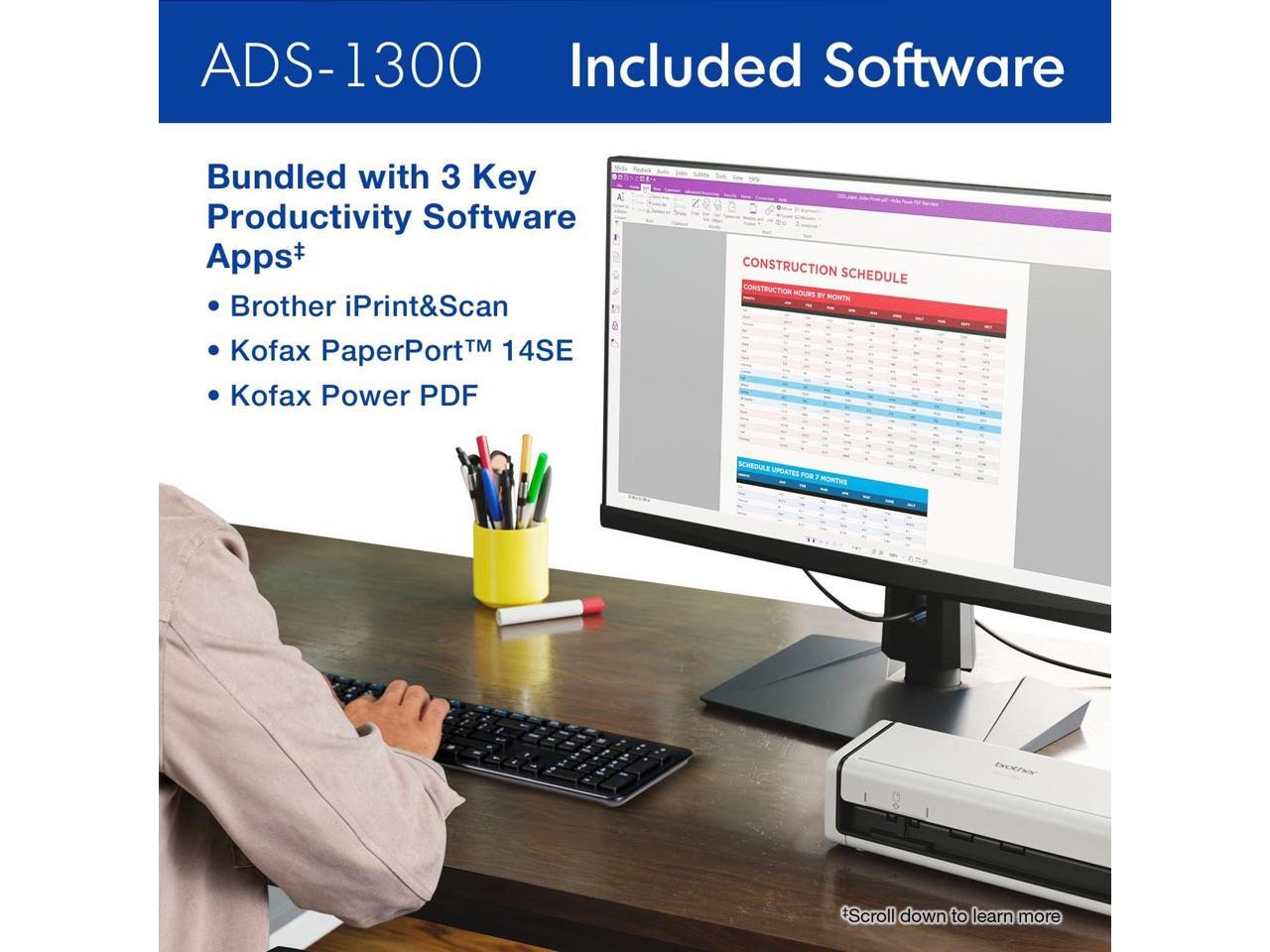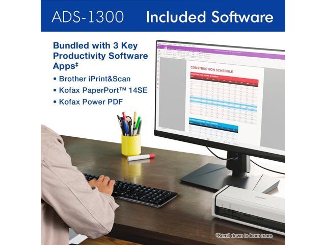 FAST, EASY SCANNING. Scan speeds of up to 30ppm(1), a 20-page automatic document feeder(2), and single/double-sided scanning capabilities make it easy to scan multiple pages (up to 8.5" x 14") quickly. REMARKABLE ADDED VALUE. Includes key productivity apps help you optimize, enhance, and customize your documents and workflows with ease(3). BROTHER AT YOUR SIDE SUPPORT. Backed by Brother with a 1-year Limited Warranty and free online, call, or live chat support for the life of your scanner.