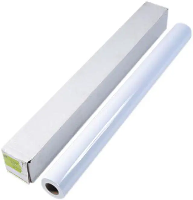HP High-gloss designjet inkjet large format paper in white color with high gloss finish measures 42" x 100' and is designed for presentation graphics and indoor displays.