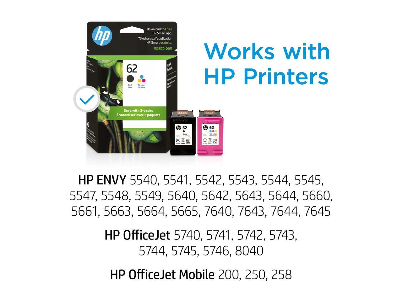 HP 62 2-pack Black/Tri-color Original Ink Cartridges, N9H64FN#140