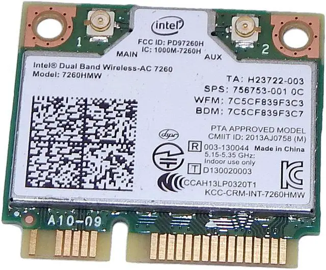 HP 756753-001 Intel Dual Band Wireless-Ac 7260 802.11Ac 2X2 Wifi And Bluetooth 4.0 Combination Wlan Adapter