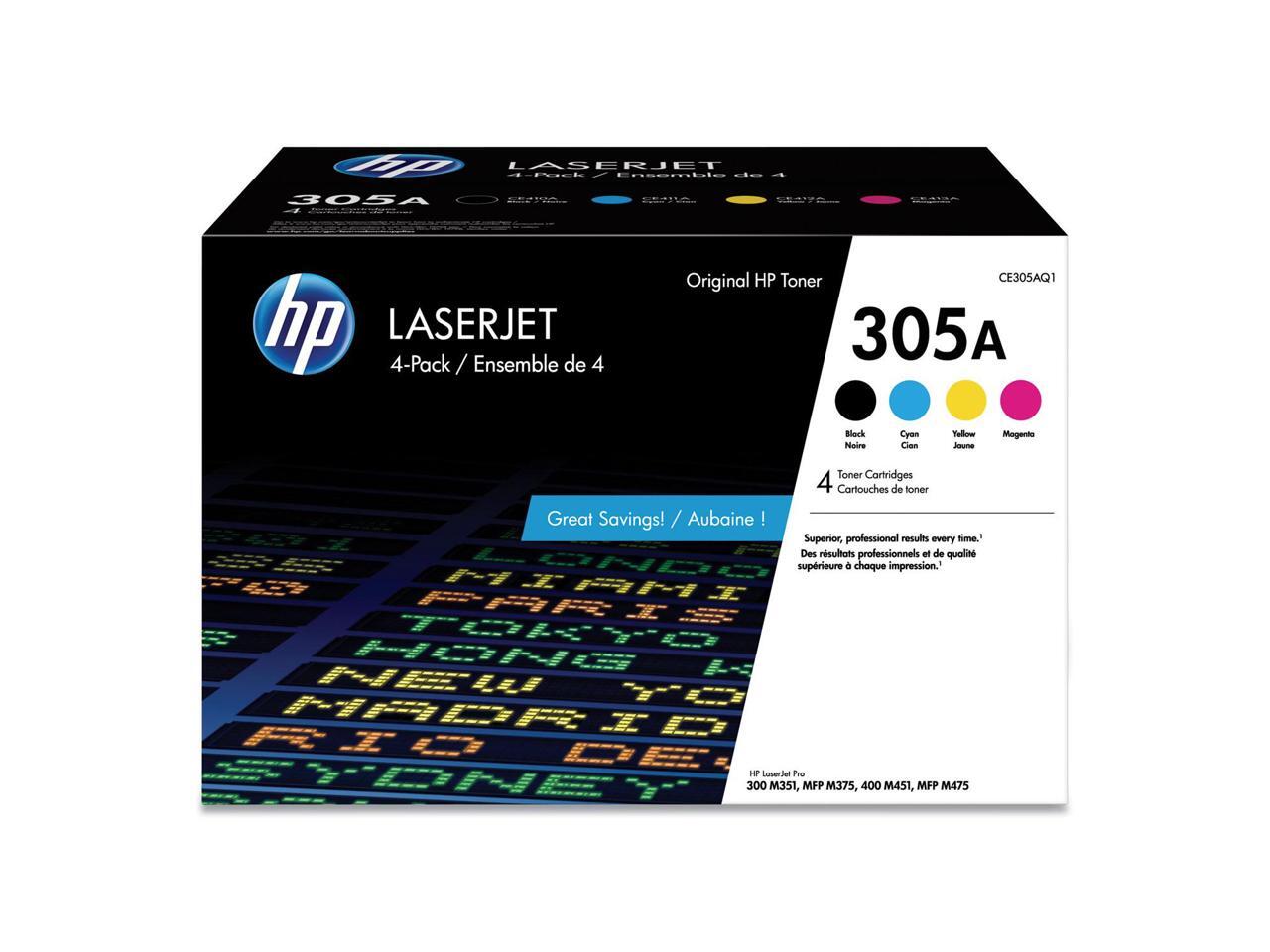 HP 305A 4-pack Black/Cyan/Magenta/Yellow Original LaserJet Toner Cartridges, CE305AQ1