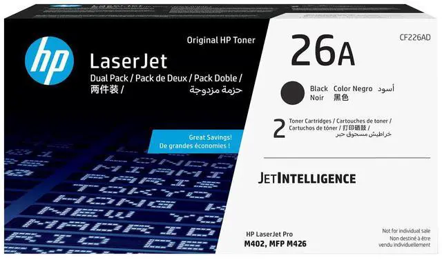 Model: HP 26A 2-pack Black Original LaserJet Toner Cartridges