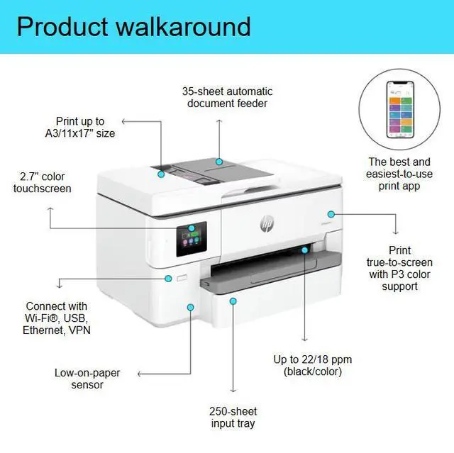 HP OfficeJet Pro 9720e Wide-format All-in-one Printer with free 3 Months of
