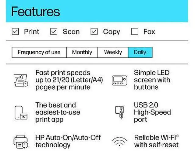 Connectivity: 1 Hi-Speed USB 2.0 (device); Wireless 802.11b/g/n 2.4GHz