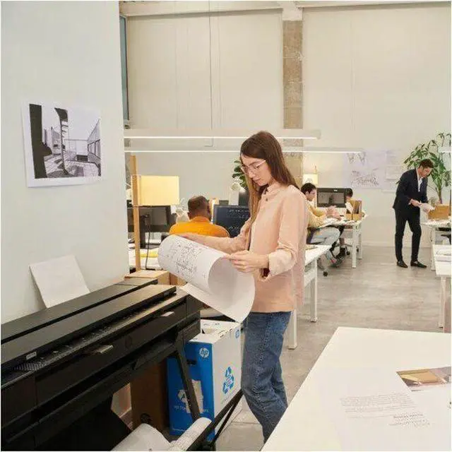 THEEASIEST2-Multi-size printing in one click Maximize agility with the world's easiest printingexperience. 2Print A4 and A0 jobs with the integrated tray. Enjoy fewer ink interventions with 300-ml ink cartridges. Simplify scan/copy workflows with personalized one-click shortcuts. CONNECTED-Secure and seamless collaboration Experience secure and seamless collaboration. Print in fewer steps with HP Click. Protect against cyberthreats with HP Wolf Pro Security. Print remotely with HPapp. 3And share with colleagues with the easy-to-use front-loading scanner. GO BEYOND-Meet office and environmental needs Go beyond and advance your environmental goals with a printer made with recycled plastics and recyclablesupplies4.