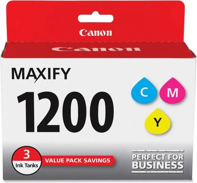 Create high-quality, smudge-proof printouts with this multipack of Canon PGI-1200 C/M/Y ink tanks.