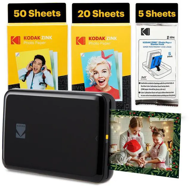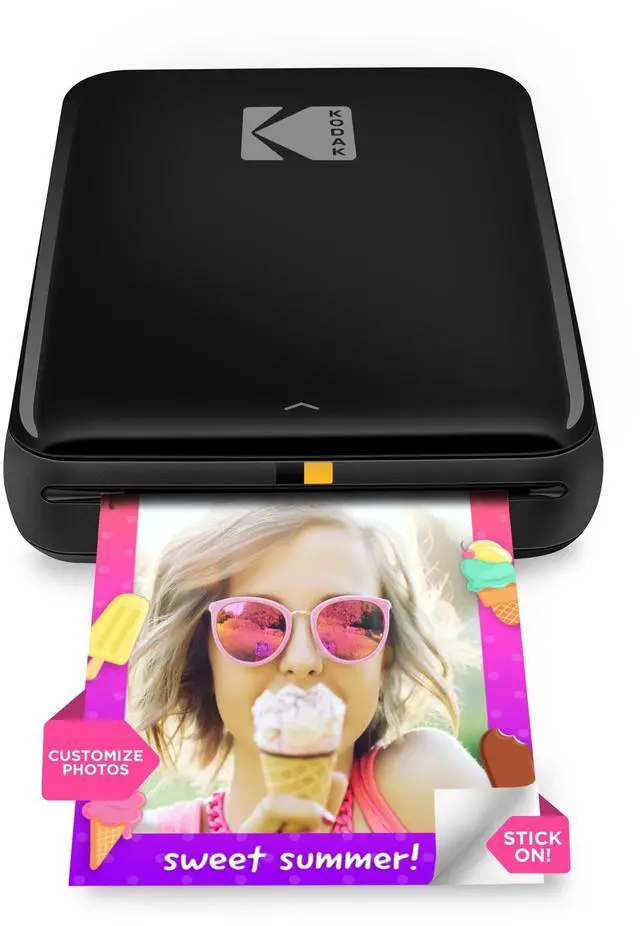 Now, with the KODAK Step Portable Printer, printing full-color photographs is faster and easier than ever. Just pair with any Bluetooth- or NFC-enabled smart device, and this Kodak photo printer will give you stunning full-color photo prints in under 60 seconds. Kodak Step mini photo printer connects to any iOS or Android smartphone, tablet, or similar device. This mini printer ZINK Zero Ink Paper technology eliminates the need for expensive inks, toners, and ribbons, delivering cool 2x3 photographs you can peel and stick to any surface. Photos printed with this portable photo printer come out clear, bright, colorful, and covered with an extra layer of protective coating to prevent smudges, rips, and water damage. The pocket printer uses the KODAK app that lets you customize photos far beyond the usual flip and rotate of your smartphone. Use our extensive editing tools for this instant printer to apply flattering filters, cutesy stickers, decorative frames, and other personalized flair. Stop waiting and start printing with this portable wireless printer from Kodak.