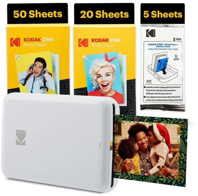 Now, with the KODAK Step Portable Printer, printing full-color photographs is faster and easier than ever. Just pair with any Bluetooth- or NFC-enabled smart device, and this Kodak photo printer will give you stunning full-color photo prints in under 60 seconds. Kodak Step mini photo printer connects to any iOS or Android smartphone, tablet, or similar device. This mini printer ZINK Zero Ink Paper technology eliminates the need for expensive inks, toners, and ribbons, delivering cool 2x3 photographs you can peel and stick to any surface. Photos printed with this portable photo printer come out clear, bright, colorful, and covered with an extra layer of protective coating to prevent smudges, rips, and water damage. The pocket printer uses the KODAK app that lets you customize photos far beyond the usual flip and rotate of your smartphone. Use our extensive editing tools for this instant printer to apply flattering filters, cutesy stickers, decorative frames, and other personalized flair. Stop waiting and start printing with this portable wireless printer from Kodak.