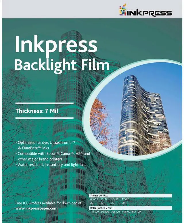 Inkpress IBF85115 Backlight Inkjet Film, 8.5x11", 5