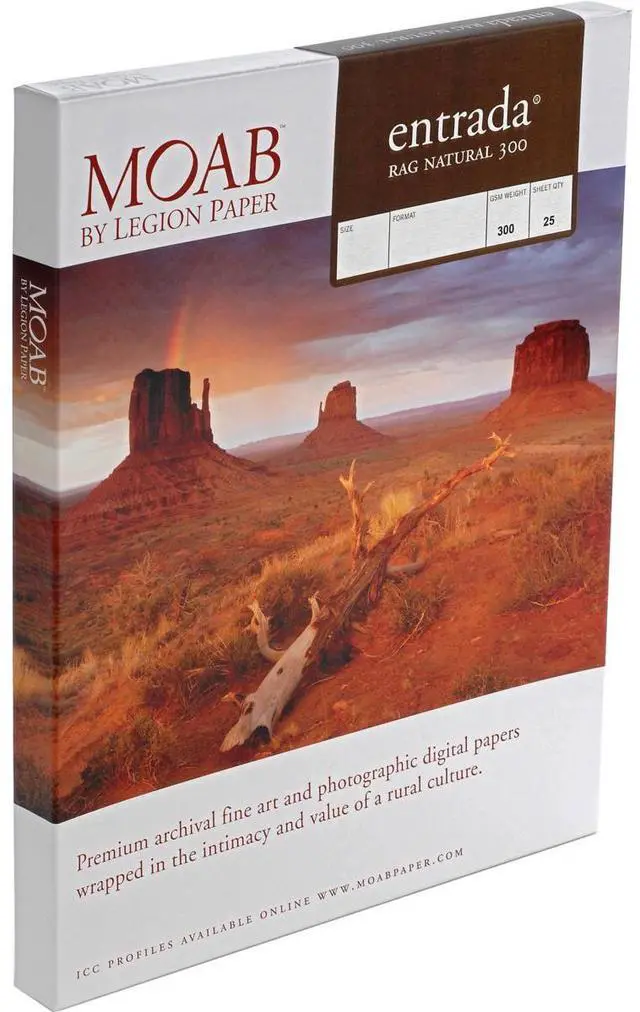 Award winning Entrada Fine Art is what makes Moab Paper Company stand above the competition. Entrada Fine Art Natural is a dual sided 100% cotton rag paper which contains no optical brighteners.