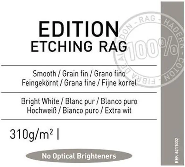 Unlike many papers on the market, this product boasts the purest white tone available, achieved without the use of Optical Brightening Agents (OBAs). OBAs are artificial brighteners that can deteriorate over time, compromising the longevity and quality of your prints. By avoiding these agents, the Canson Infinity Edition Etching Rag ensures a high paper shade stability and resistance to aging, using natural minerals to maintain its pristine condition.