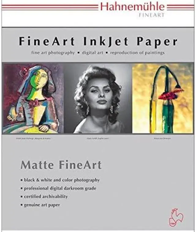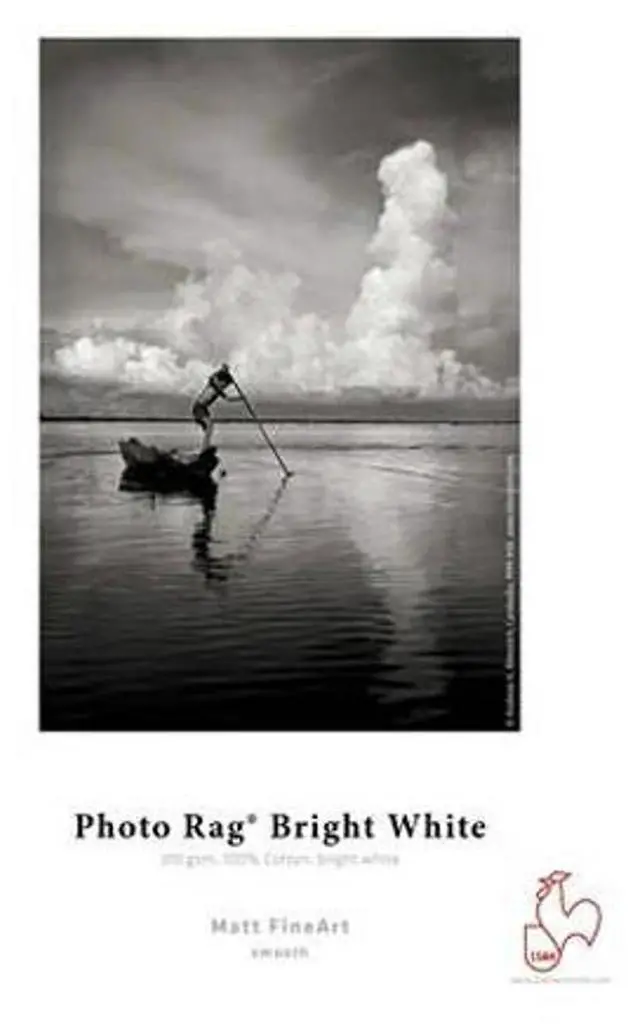 If you're in search of a premium inkjet paper that delivers exceptional results, look no further than the Matte Photo Rag, 310 gsm 100% Rag, Smooth, Extra Bright White Inkjet Paper. This 13x19" paper, available in a pack of 25 sheets, is a product of Hahnemuhle, a brand synonymous with high-quality fine art paper. Designed with a matte finish and a smooth surface, this photo rag paper boasts an extra bright white base color. This feature not only enhances the luminosity of your images but also dramatically improves the depth and contrast of black and white prints.