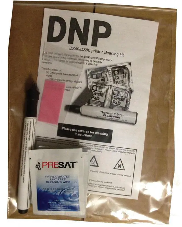 The DNP Print Head Cleaning Kit, meticulously engineered for all DS RX model printers, offers an effective and comprehensive solution for maintaining your printer's performance. This high-quality, easy-to-use kit includes 4x alcohol pads, a polishing cloth, and a marker, all specifically designed to ensure the longevity and efficiency of your printer's print head. As a durable and affordable choice, this kit provides a thorough cleaning experience, making it an essential tool for all DS RX printer owners. The alcohol pads are perfect for removing any ink residue, while the polishing cloth ensures a clean and dust-free print head.