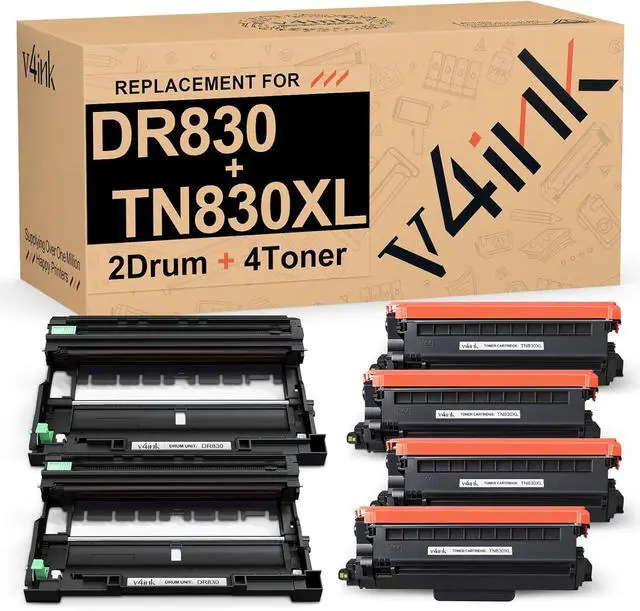 Package includes 4-pack v4ink TN830XL black compatible toner cartridge, 2-pack v4ink DR830 drum unit and 1 User Guide. Comes in a whole set with drum and toner, which is convenient for replacing and using.