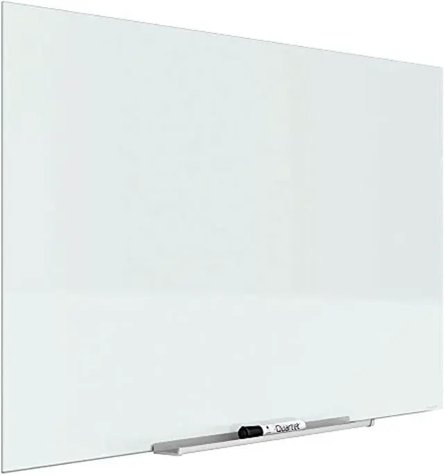 Mount this tempered-glass whiteboard on your home or office wall to provide a convenient place for family or colleagues to leave notes. Attach papers to the generous 28 x 50-inch surface using magnets, and use the bottom rail to store markers and other supplies. This Quartet dry-erase board has a frameless design for a sleek, contemporary appearance, and the smooth surface wipes clean without ghosting or staining.