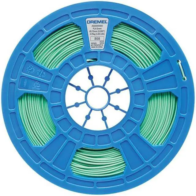Dremel PLA-GRE-01. 75 kg PLA 3D Printer Filament (Green) &bull50% more filament per spool&bullExtensively tested with Dremel (R) 3D printers&bullAutomatic spool recognition with 3D45 printers&bullHigh softening temperature to minimize risk of nozzle jams while maintaining print quality&bullGreen. 75 kg PLA 3D Printer Filament (Green)
