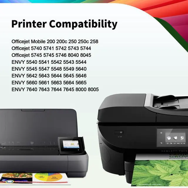 Compatible Model: For HP Officejet 200 250 258, HP Officejet 5740 5741 5742 5743, HP Officejet 5744 5745 5745 804 8045, HP ENVY 5540 5541 5542 5543 5544 5545, HP ENVY 5547 5548 5549 5640 5642 5643, HP ENVY 5644 5646 5660 5661 5663 5664 5665, HP ENVY 7640 7643 7644 7645 8000 8005