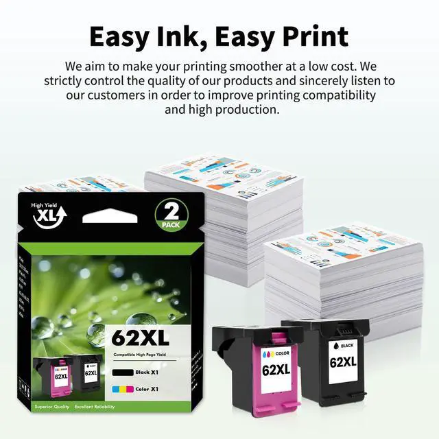 2 Pack 62XL Ink Cartridges For HP Ink 62XL Envy 7640 5540 5640 5660 5740 Printer