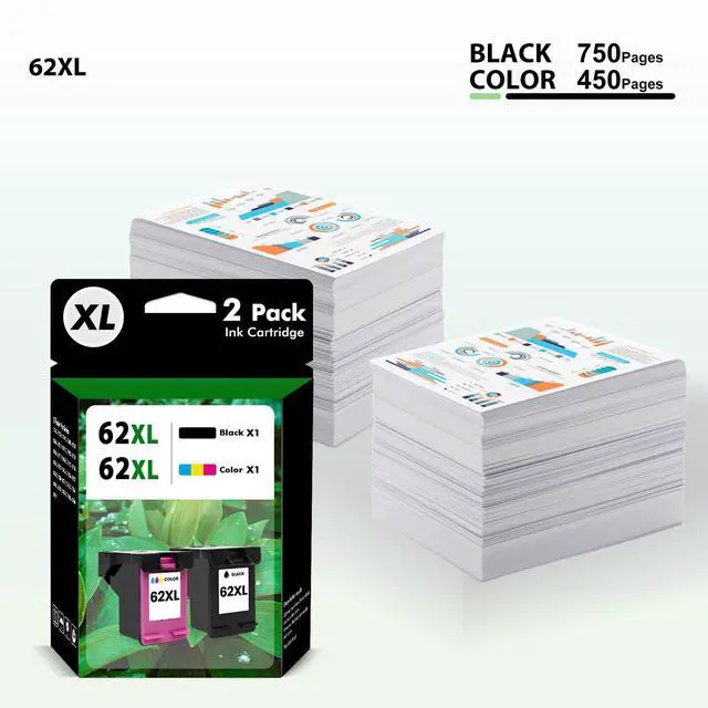 62 XL Ink 2-Pack Color & Black for HP Officejet Mobile 200 200c 250 250c 258