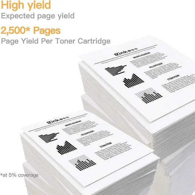 Each toner cartridge will yield up to 2,500 pages at 5% coverage