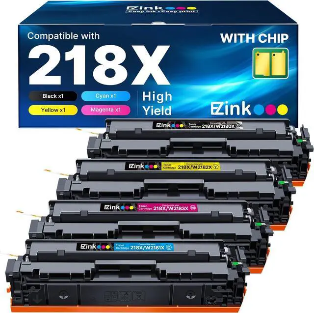 With Chip: These E-Z Ink 218X toner cartridges for HP 218X toner cartridges 4 pack are already installed with chips to provides the printing experience crucial for office productivity, No need to transfer and install original 218A or 218X toner's chip to them