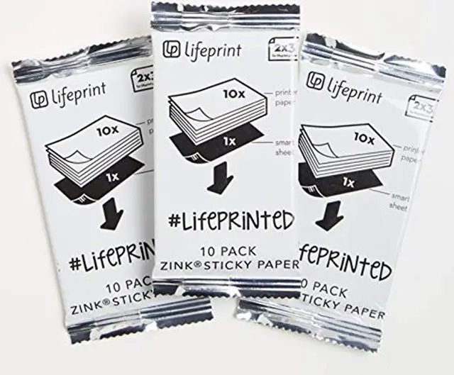 The Lifeprint 30 pack of film contains three 10-packs of photos. Our sticky-backed photos make it super easy for you to peel and stick your Lifeprint photos anywhere you want, so you can decorate your room and personalize your space with your favorite memories. Lifeprint film requires NO INK and is powered by ZINK Technology.