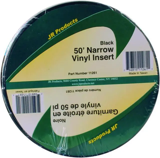 JR PRODUCTS 11261 JR Products 11261 Narrow Vinyl Insert - Black, 3/4" x 50 The JR Products Narrow Vinyl Insert is RoHS Certified to ensure the highest quality available! Lifetime Warranty. Dimensions: 3/4" x 50. Color: Black. MPN:11261 756815112611