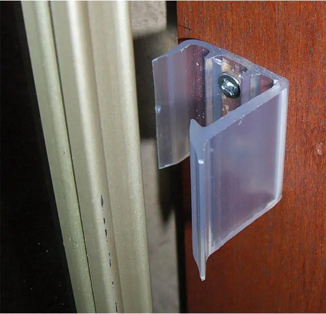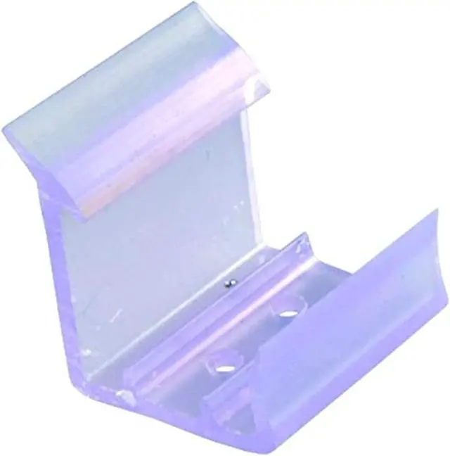 The JR Products 20665 Sliding Mirror Door Catch is a factory replacement catch found on most RV sliding mirrored wardrobe doors. It mounts easily to the door frame and clips around the metal portion of the door when closed, providing a secure catch while traveling. Includes mounting screws.