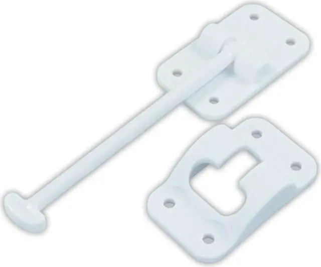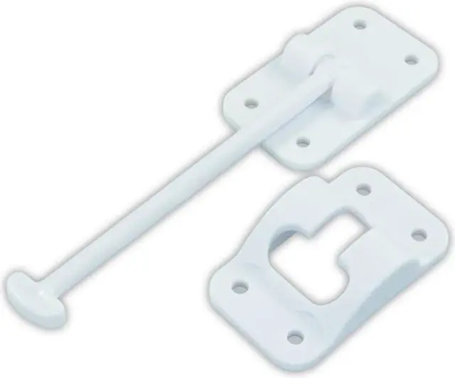 The JR Products 1Plastic T-Style Door Holder is constructed of durable plastis and is a direct OEM replacement. Mounting screws are included. Lifetime warranty.
