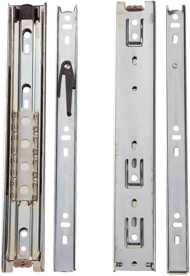 Give your RV that residential "feel" with 45mm ball bearings slides. These quality metal slides are full extension, 100 lb. capacity. Slides are sold in pairs with hardware to complete one drawer. Packaged.
