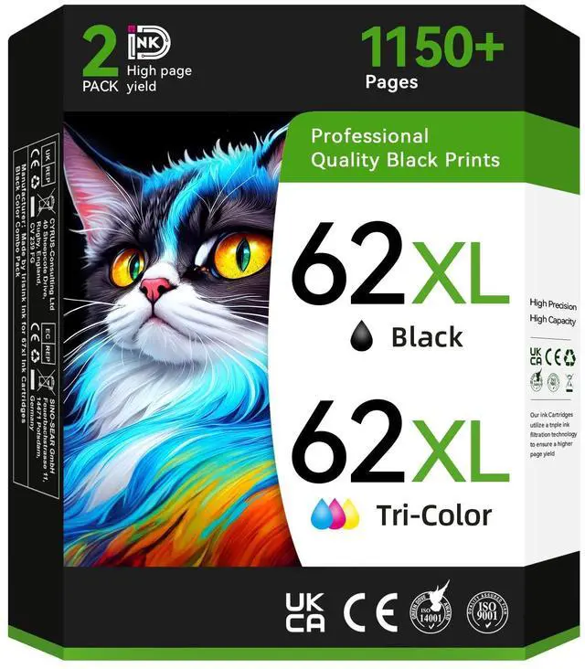 Product List :1 Black + 1 Color 62XL Replacement for 62XL Ink Cartridge Combo Pack