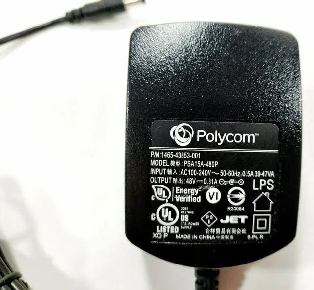 New Polycom PSA15A-480P AC Adapter 48V 0.31A for 310 410 500 600 1500 handset