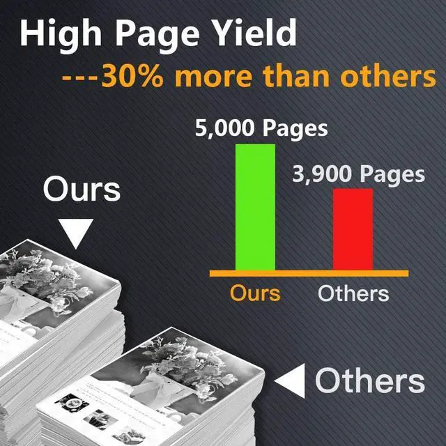 ML-1910 ML-1915 ML-2525 ML-2525W ML-2540 ML-2545 ML-2580N30% More Page Yield Up to 5,000 printing pages of 2-Pack Black Compatible Samsung Toner Cartridges 105L MLT-D105L (added 30% more toner in each Printer Cartridge); lower price but higher page yield, you save much more than 30% cost