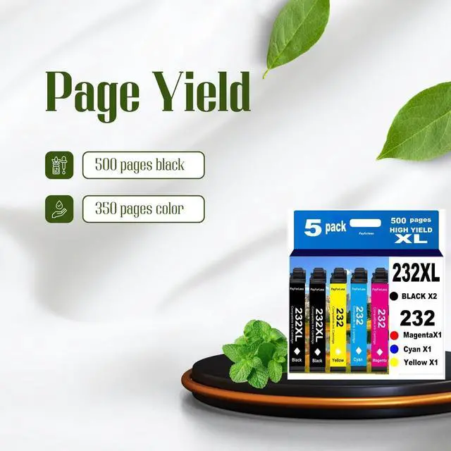 • Package Contains: 5 Pack 232XL ink cartridges. 2 X Black, 1 X Cyan, 1 X Magenta, 1 X Yellow.