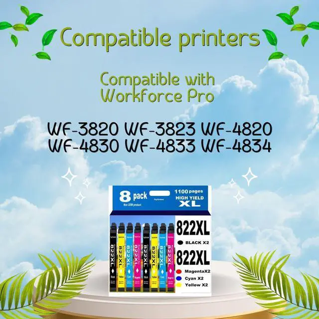 Outstanding Performance: Our remanufactured for Epson 822XL ink cartridges, compatible with Epson 822 and 822XL printers, deliver a dependable, high-quality printing experience. Enjoy smooth printing while avoiding common issues like streaks, smudges, or ink leaks.