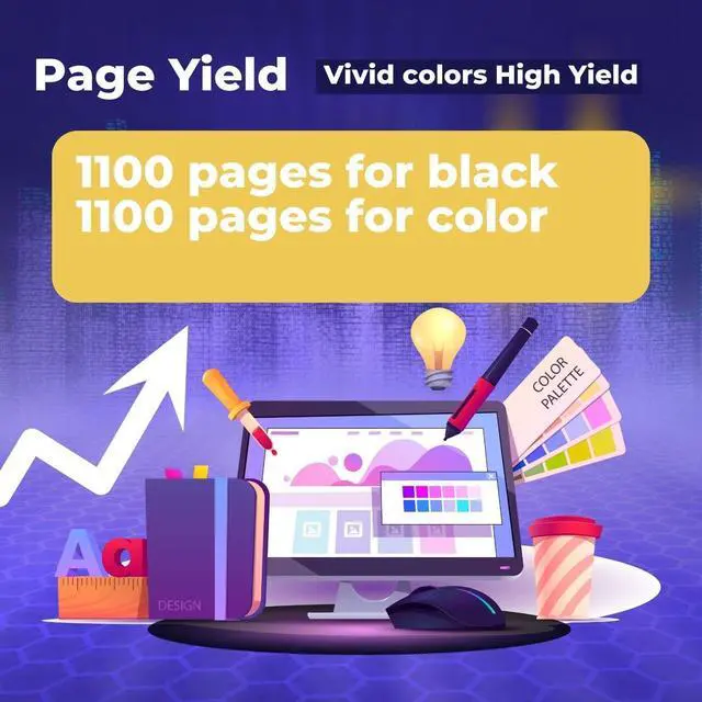Page Yield: Black 500 pages+Cyan 350 pages+Magenta 350 pages+Yellow 350 pages(at 5% coverage of A4 paper).