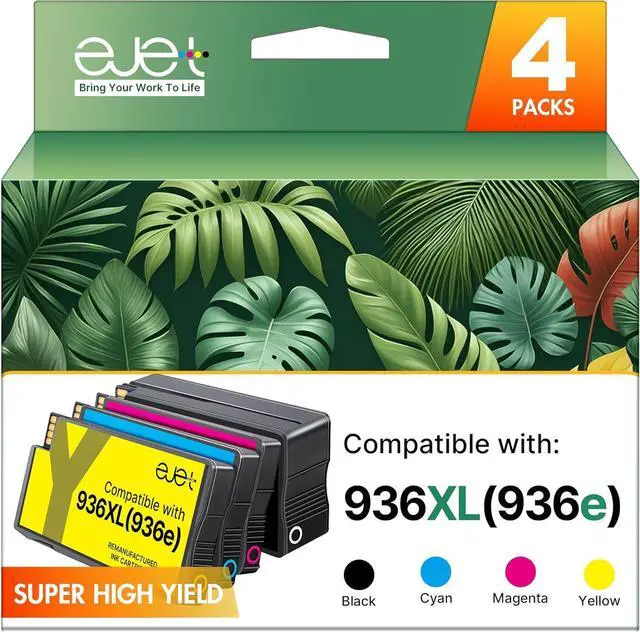 [XL Page Yield]: ejet for HP936 ink cartridges 4 pack high yield 2500 pages for HP 936e black ink cartridge & 1650 pages color ink cartridge (A4 letter with 5% coverage)