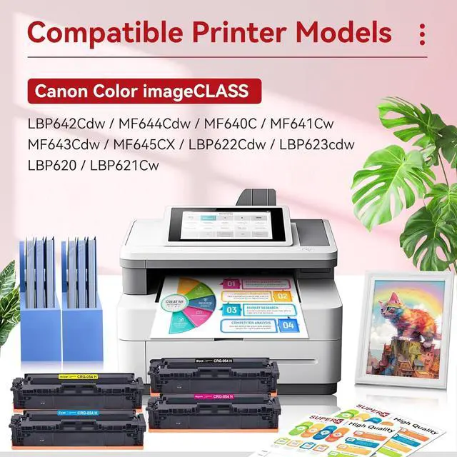 • Printer Compatible for use with: 054 054H toner cartridge replacement for Canon Color imageCLASS LBP642Cdw MF644Cdw MF640C MF641Cw MF643Cdw MF645CX LBP622Cdw LBP623cdw LBP620 LBP621Cw printer for Canon 054 054H toner cartridges