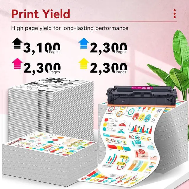 Page Yield: Up to 3,100 pages per 054H Black toner cartridge replacement for Canon 054 054H toner, and 2,300 pages per 054H Color toner replacement for Canon 054 054H printer toner (at 5% coverage)