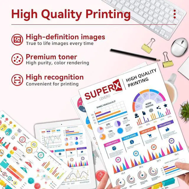 LEMERO SUPERX 054H black toner cartridges and 054H color toner cartridges compatible for Canon 054 054H toner cartridges for MF644cdw MF642cdw toner cartridges deliver brilliant quality printing with deep black and crisp text
