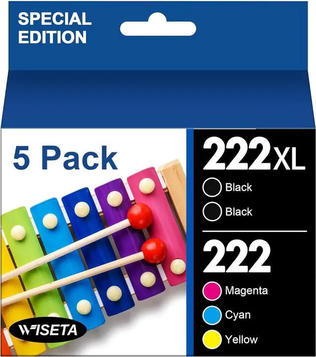 What You Get: 2 x 222XL black ink cartridges high capacity, 1 x for Epson 222 cyan, 1 x for Epson 222 magenta, 1 x for Epson 222 yellow, 1 comprehensive user guide