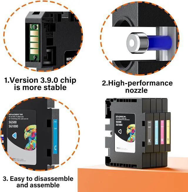 Ink Capacity: Each standard cartridge holds 35ml. Package includes:1 × Black,1 × Cyan,1 × Magenta,1 × Yellow Perfectly designed for SG500 and SG1000 printers.